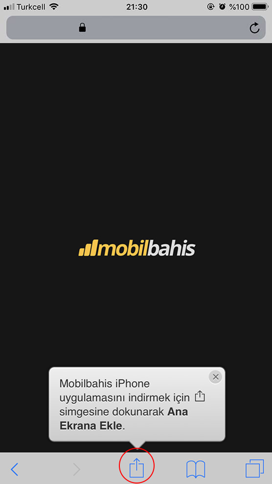 Açılan adreste iOS için "Paylaş" butonuna basın.